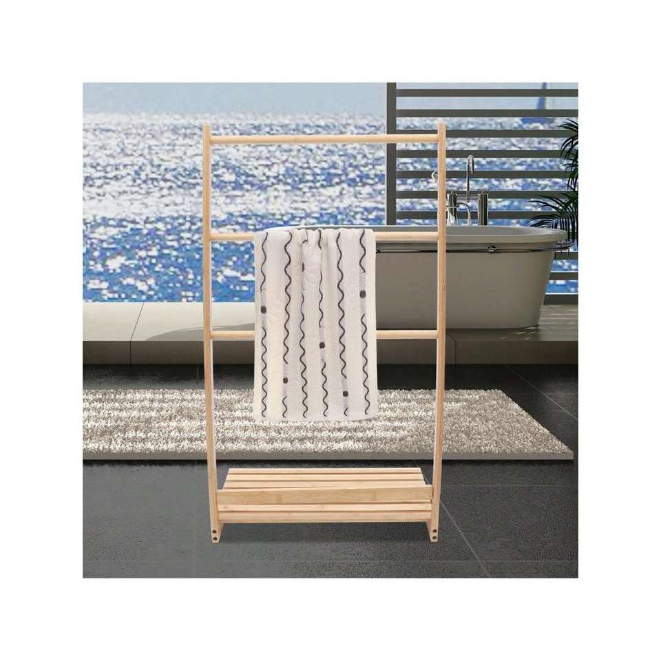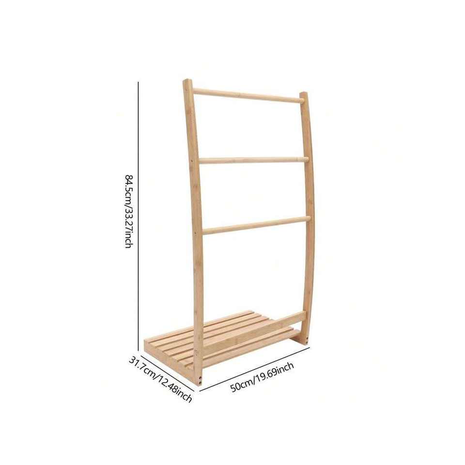 Three-Layered Cast Iron Bamboo Solid Floor Drying Rack Household Towel Shelf with Stand for Bathroom Use