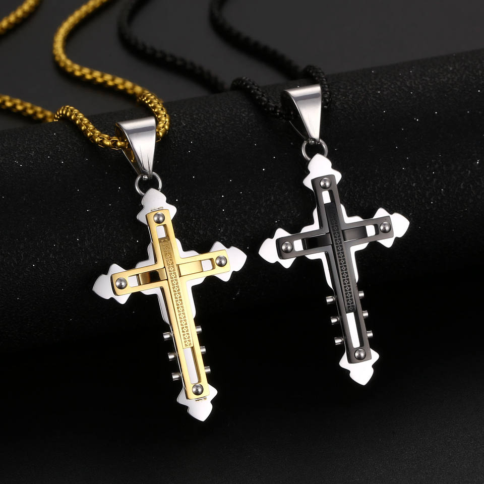Three Layers Luxury Best Religious Cross Pvd Stainless Steel Christian Pendants Fine Fashion Jewelry Necklaces for Men 2024
