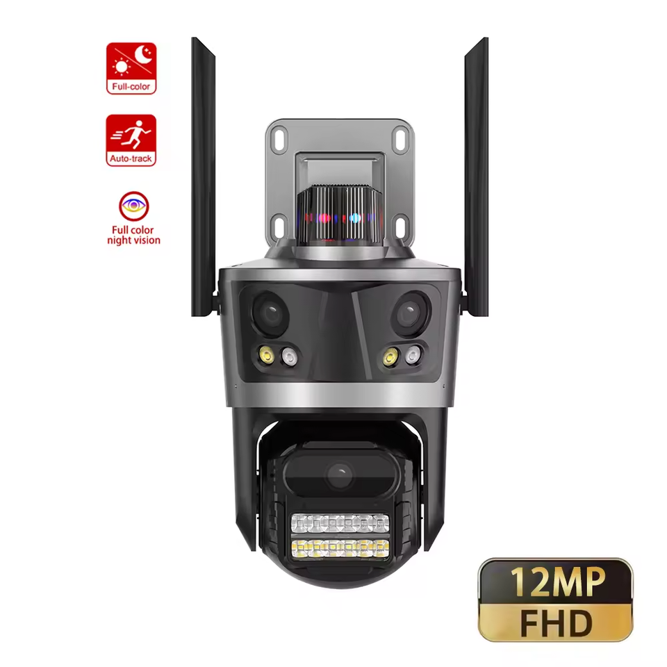 Three Lens 4k Full Hd Video Night Vision Wifi Outdoor Icsee Cctv System Smart Home Security Ptz Ip Camera