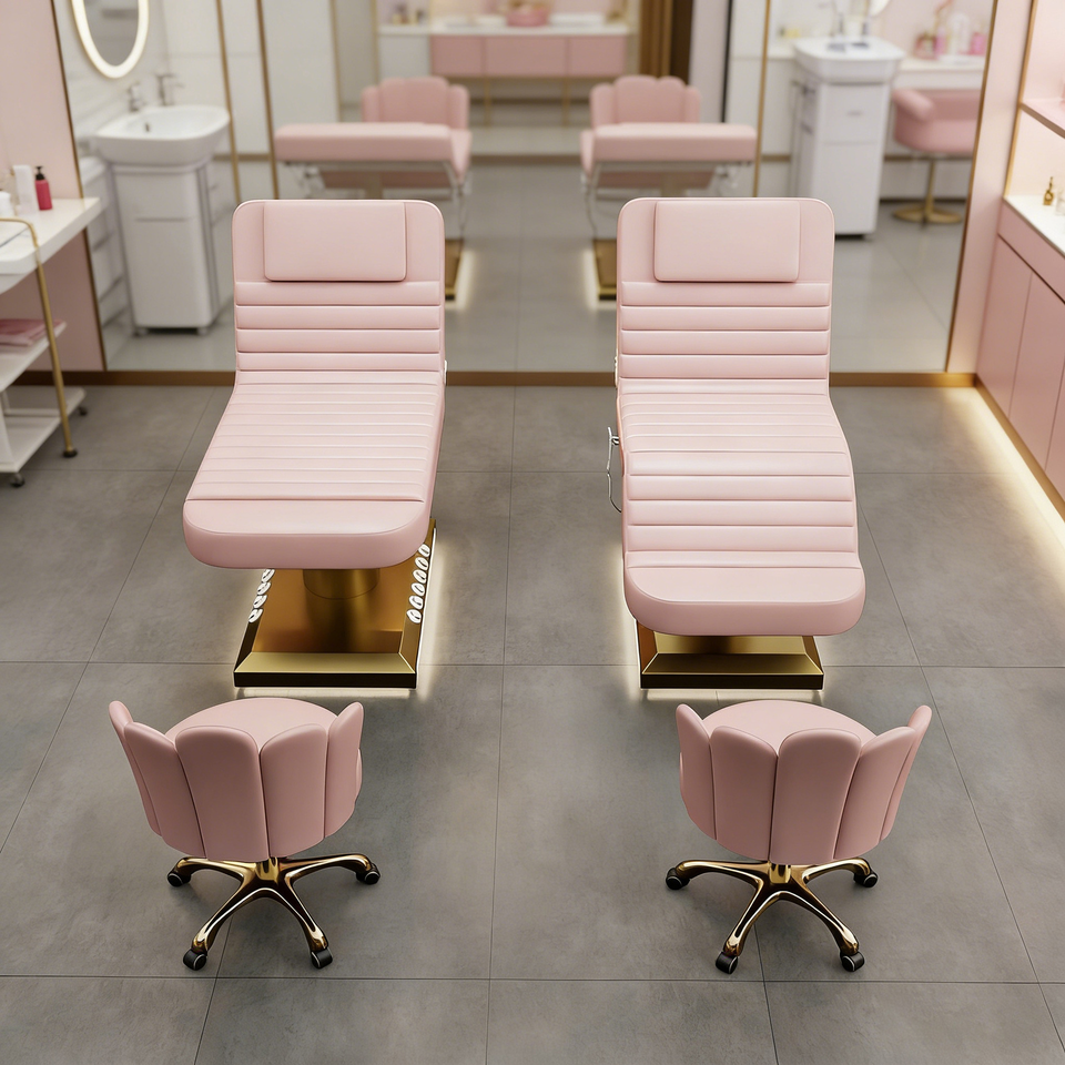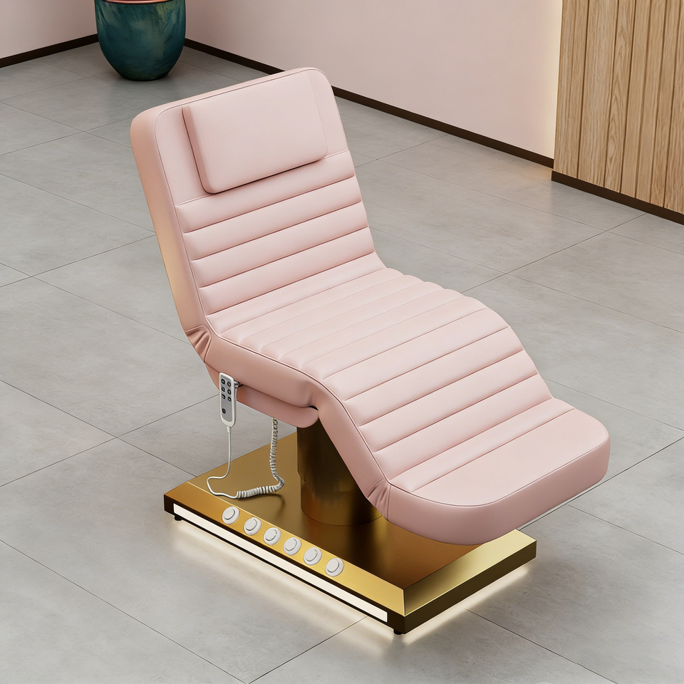 Three Motors Wood Grain Base Velvet Fabric Extension Bed Electric Massage Bed Spa Facial Lash With Foot Control and Led Lamp