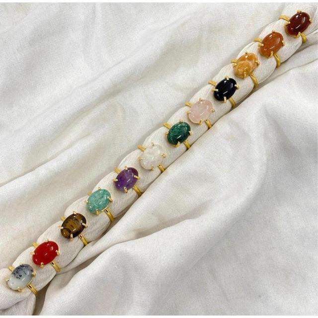 Three Multi Colour Stone Gold-Plated Handmade Brass Ring Natural Stone Fashion Jewelry Gift for Men Women Wholesale Jewellery