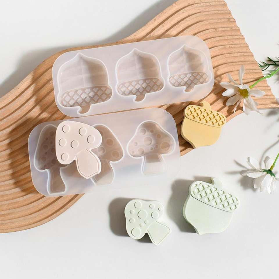 Three Mushrooms Pine Cone Cartoon Cute Aromatherapy Candle Decoration Gypsum Candle Silicone Mold