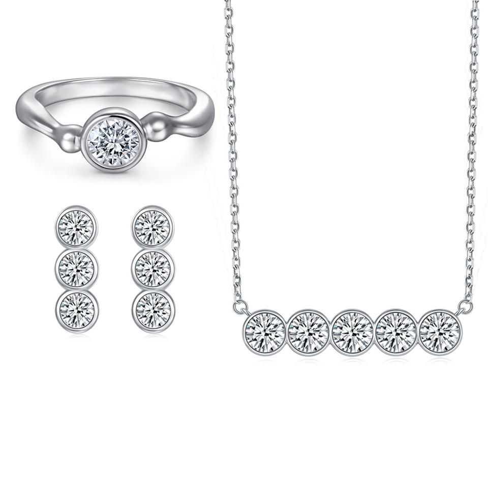 Three-Piece S925 Sterling Silver Vintage Style Necklace Earring Ring Set Zircon for Women-for Parties