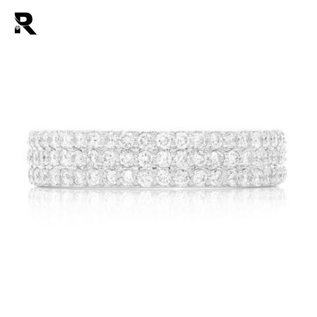 Three Row 14K White Gold 1.15ctw VVS-VS Round Brilliant Cut Diamond Wedding Band Ring for Women and Men IGI Certified Sale Price