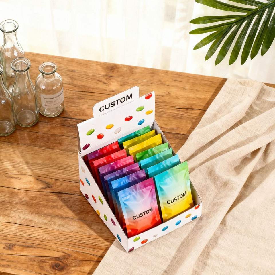 Three Side Seal PET Snack Packaging Bags with Display Carton Box Food Grade Custom Logo Wholesale OEM Supplier for Pet Food