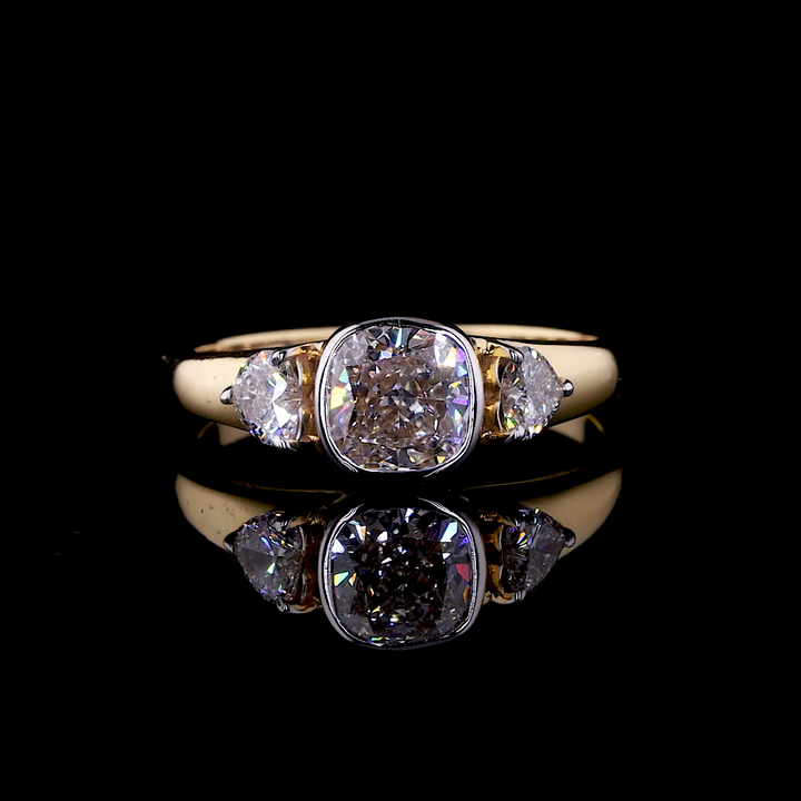 Three Stone Cushion Cut Lab Grown Diamond Engagement Ring