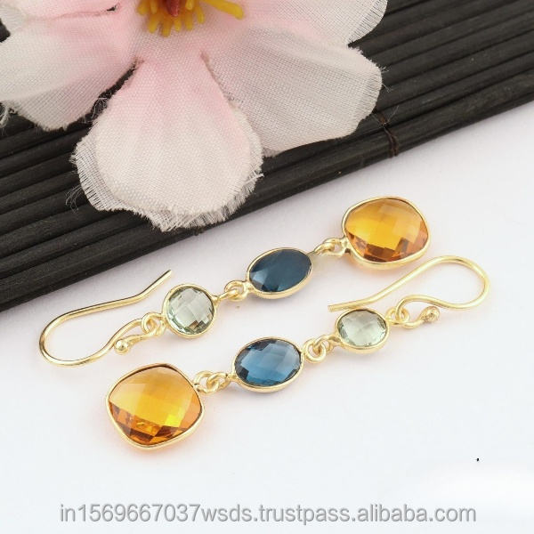 Gemstone Name:Green Amethyst, London Blue Topaz Quartz & Citrine