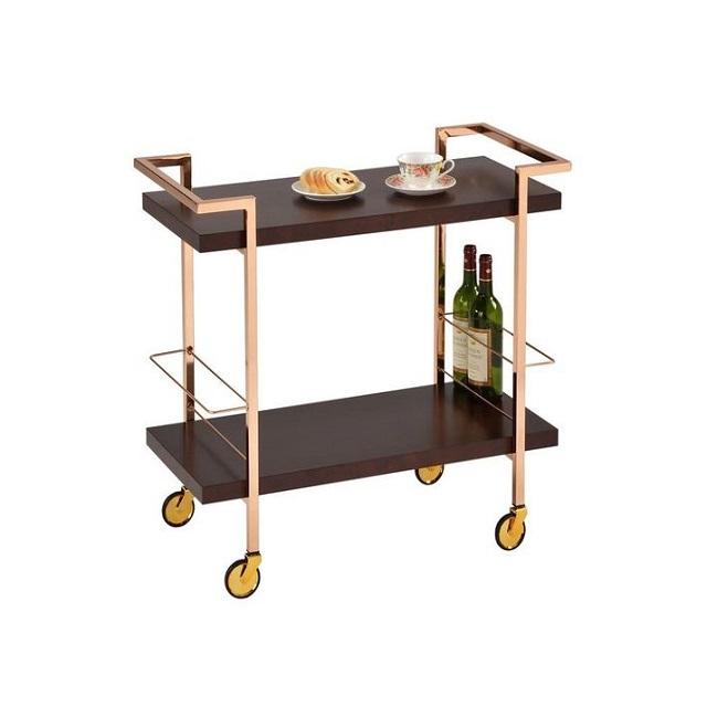 Three Tier Iron And Wooden Serving Trolley Customized Size And Shape Serving Cart Trolley For Home Use