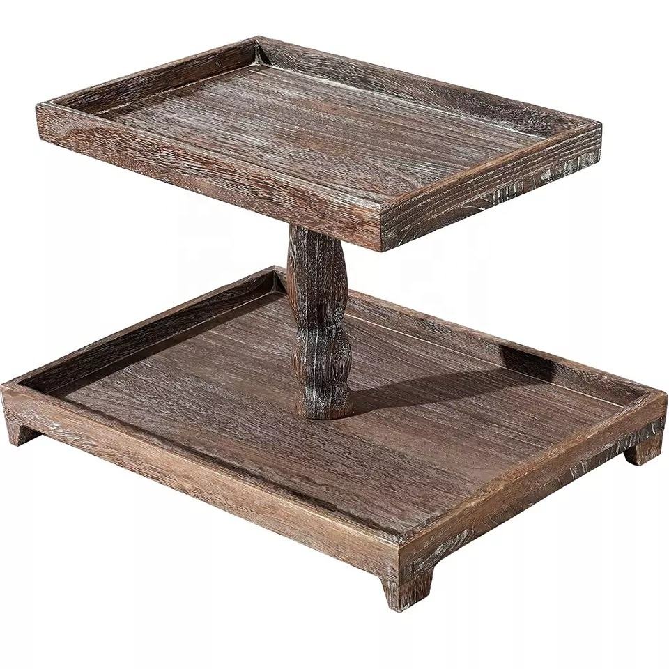 Three-Tier Rectangular Wooden Cake Stand with Black Metal Frame Eco-Friendly Versatile Cake Tools Durable Stands