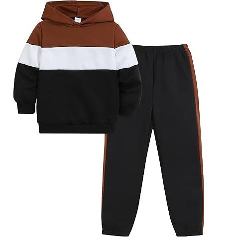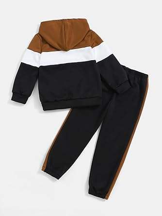 Three Toned Acid Wash Color Block Kids Sweatsuit Hoodie Tracksuit Set Regular Fit Jogging Running Blended Eco-Friendly 2pcs Set
