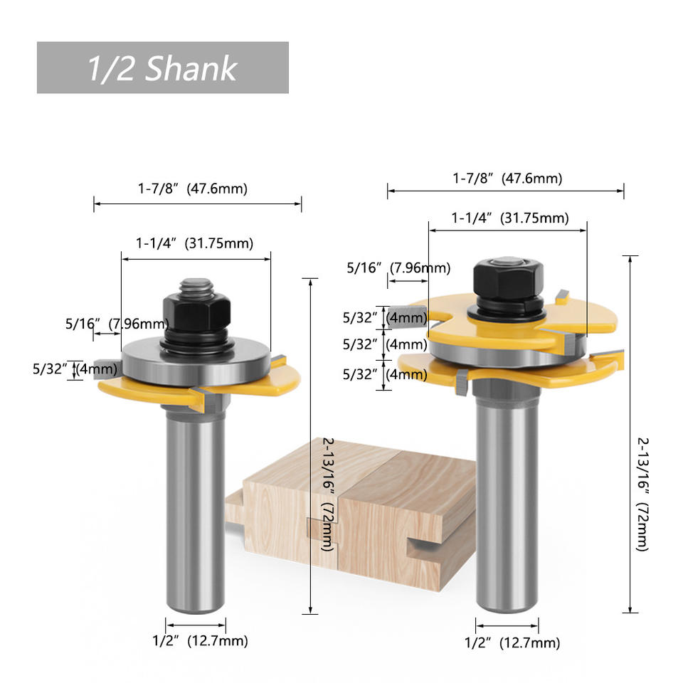 Three Tooth T Shape Tenon Cutter 1/2 Shank For Woodworking Milling Cutter Timber Processing