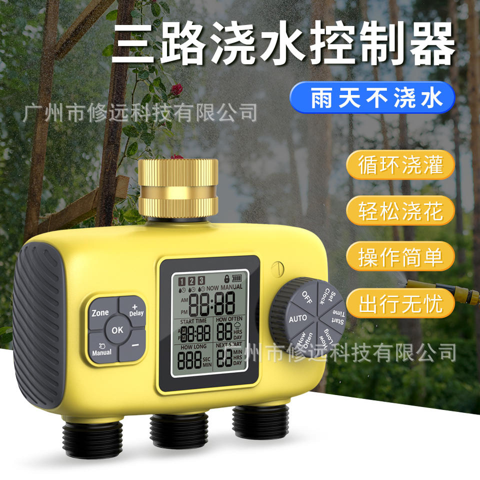 Three Way Automatic Irrigation Timer Digital Watering Controller For Garden Lawn Nursery Outdoor Use Plastic Body