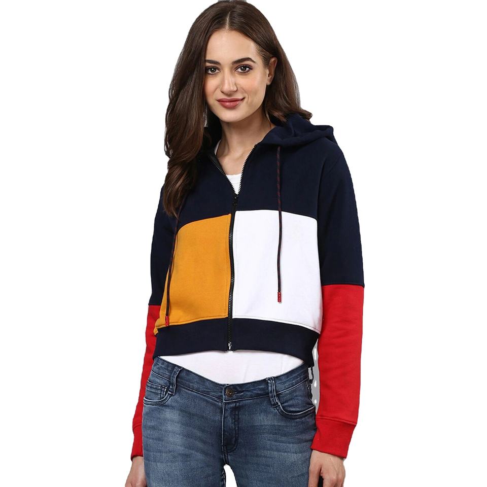 Three Color Combo Hoodies with Handy Pocket Fashion Long Sleeve Zip up Women Hoodies Half Red and Black Combo Long Sleeve Hoodie