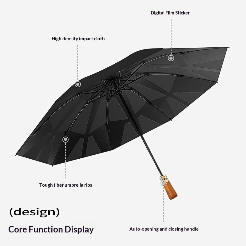 Three-fold Memory Patch Easy Fold Easy Close Umbrella Solid Color Male Reverse Business Wholesale Printing