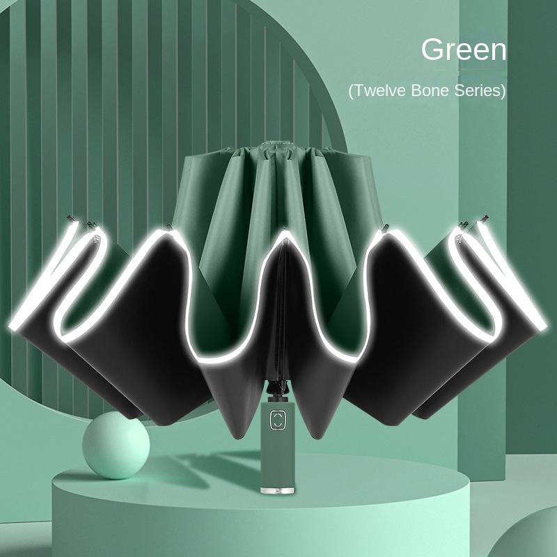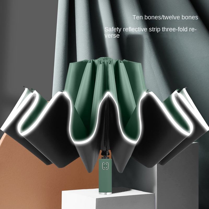 Three-fold Reverse Fully-Automatic Folding Umbrella Reflective Strip 105cm Open Diameter Business Travel Advertising Gift Logo