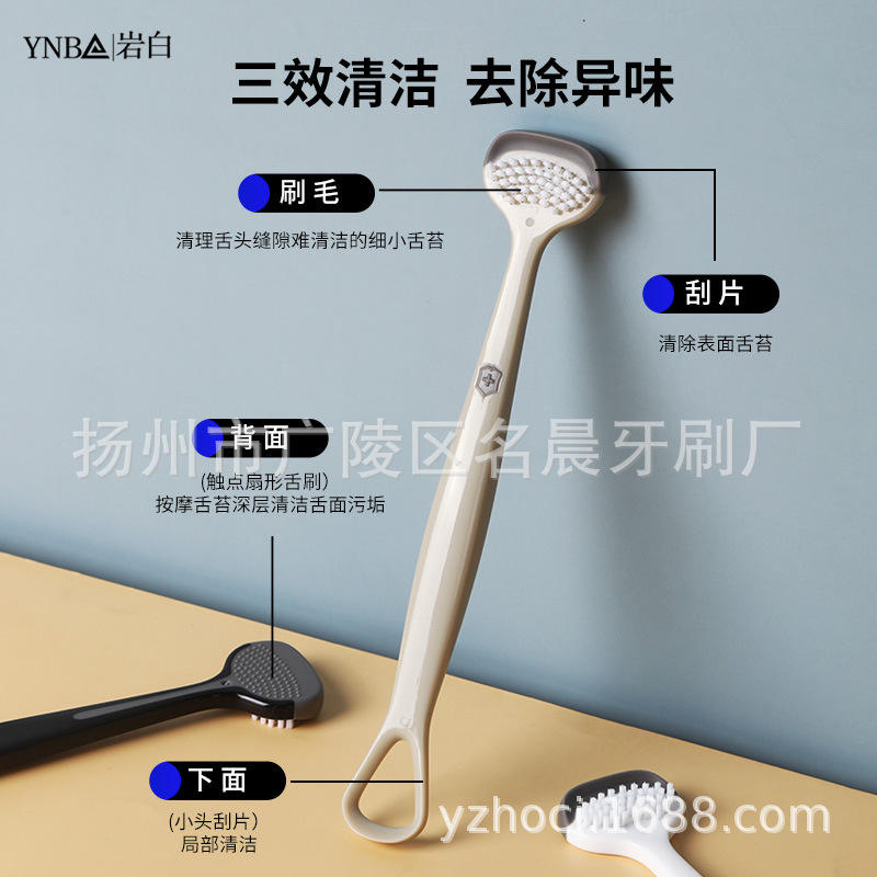 Three-in-One Tongue Cleaner Laser Logo Cross-Border Scraper Brush Plate-Wholesale Tongue Cleaning Tool