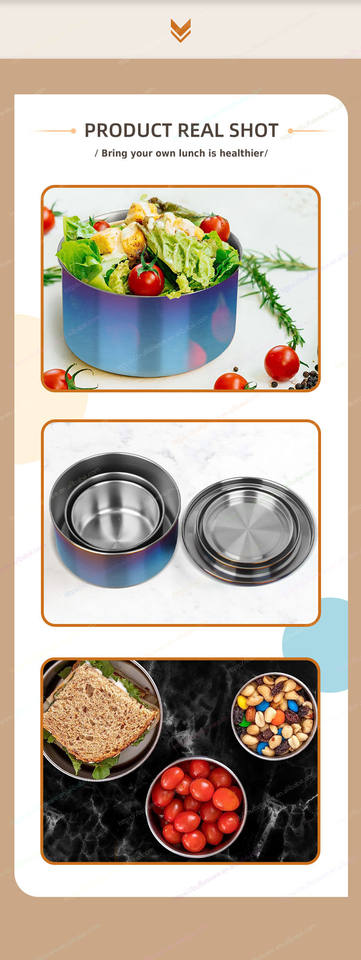 Three-piece Hot Sale 304 Stainless Steel Multiple Colors Portable Round Mini Nut Sauce Lunch Snack Box Container