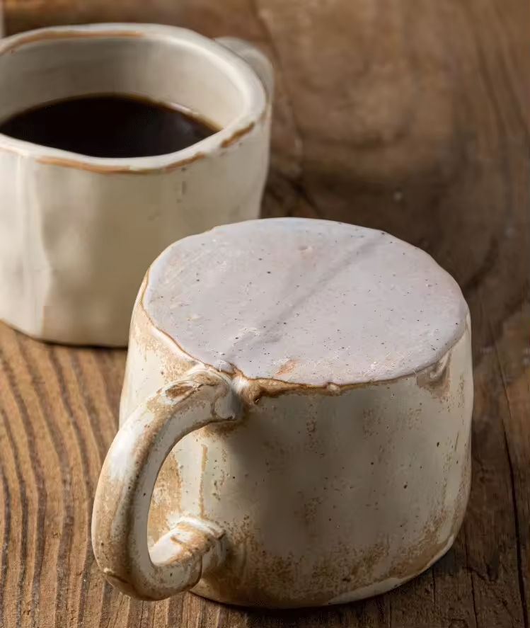 Thrift Handmade Irregular Porcelain Clay Ceramic Retro Coffee Cup Spoon Vintage Design Sustainable Reusable Back-to-school