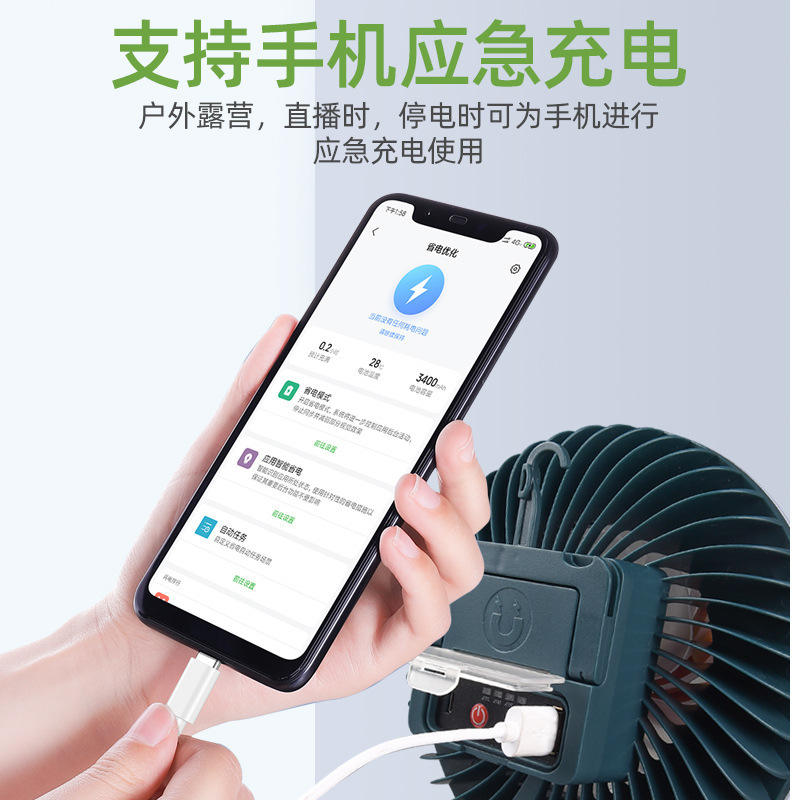Thzp006 Led Fan Light With Usb Rechargeable For Live Streaming Outdoor Camping Emergency Lighting Plastic Manual Switch