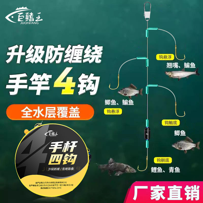 Tianheng Hand Rod Four Hooks Pre Tied Leader Double Hooks Anti Tangling Multi Hook Fishing Hook Set For Crucian Carp