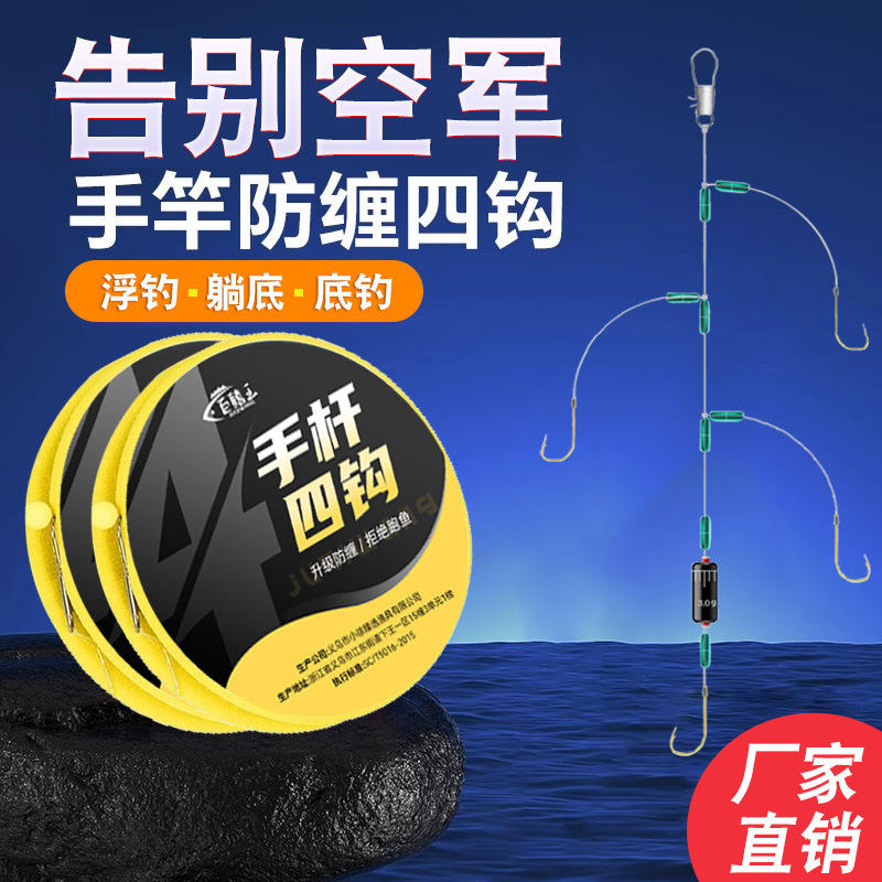 Tianji Hand Rod Four Hooks Pre Tied Leader Double Hook Set Anti Tangle Gold Sleeve Barbed Crucian Carp Fishing Hook