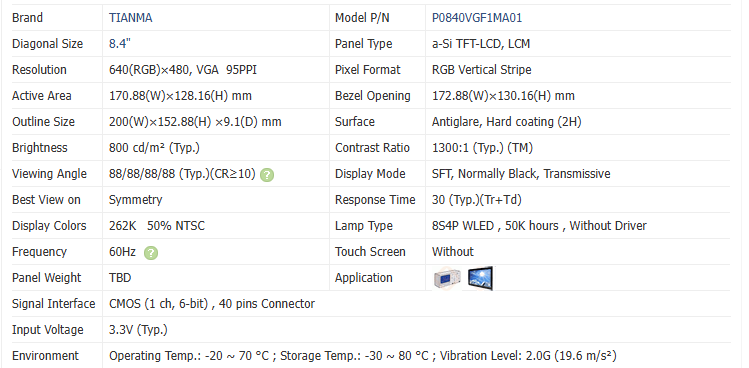 Tianma P0840VGF1MA01 Brand New And Original 8.4 Inch LCD Screen 640*480 Original Source Medical LCD Panels LCD Modules