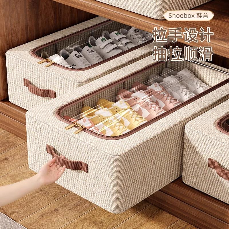 Tianshan Foldable Shoe Box Storage Organizer Rectangle Off White Stackable With Lid Moisture Proof Dust Proof