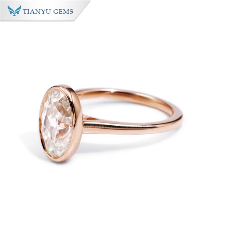 Tianyu Classic Bezel Setting Oval OEC DEF GH VVS Moissanite Diamond Engagement Ring Custom 10K 14K 18K Platinum Wedding Band
