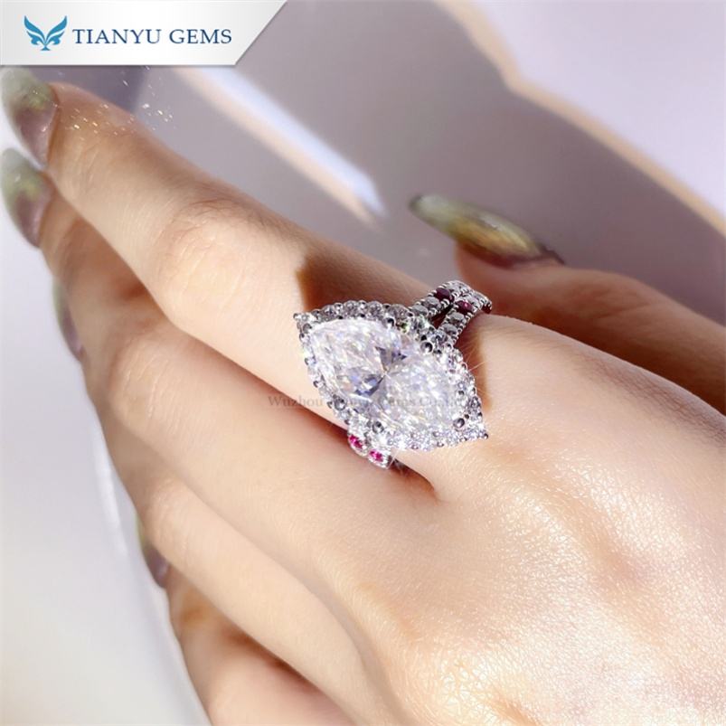 Tianyu Double Band Marquise Cut Moissanite Diamond 14K 18K Real Gold Lab Grown Diamonds Wedding Engagement Rings
