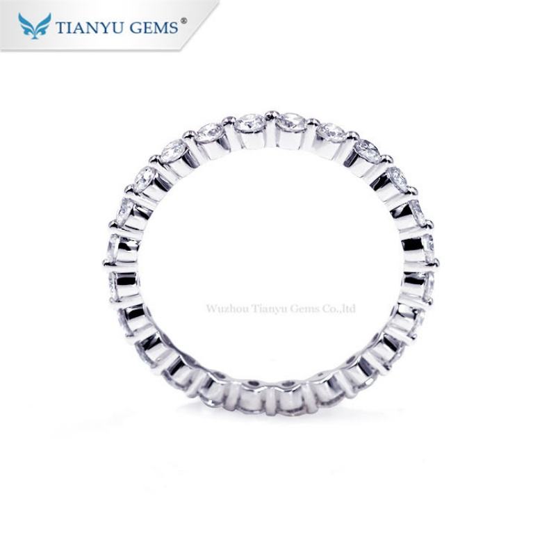 Tianyu Gems 2.0mm Round Brilliant Cut Moissanite Diamond White and Rose Gold Color Ring Band