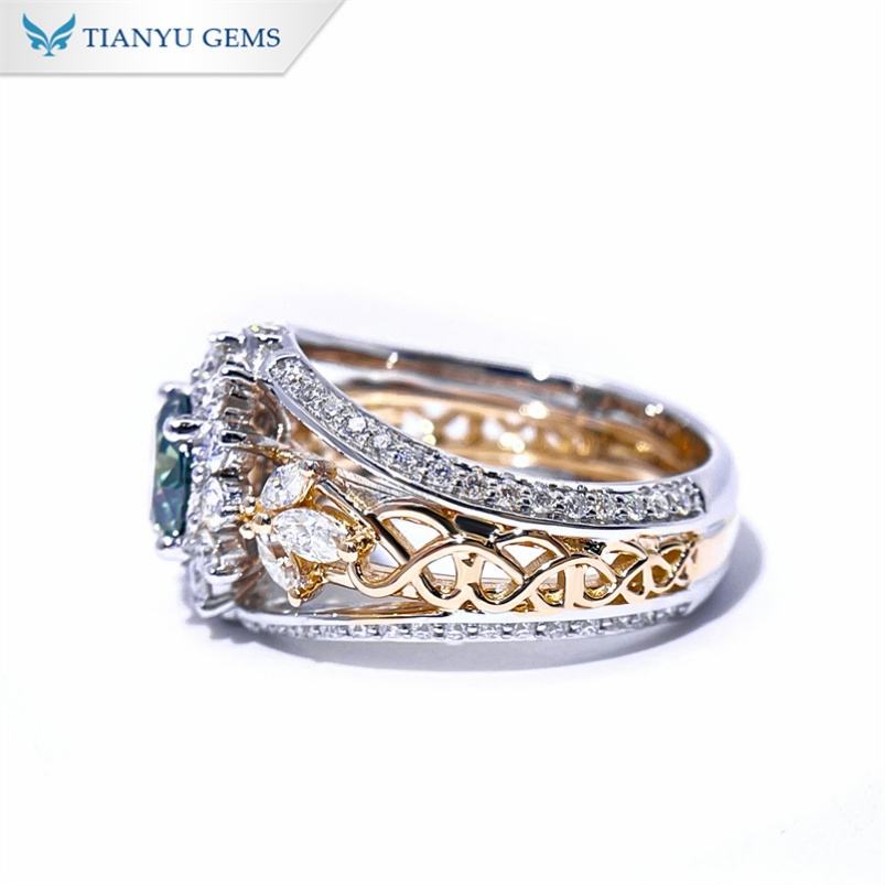Tianyu Gems 7.24g 14k White Gold and Yellow Gold Setting Round Cut 6.5mm 1ct Green Moissanite Luxury Fashion Rings