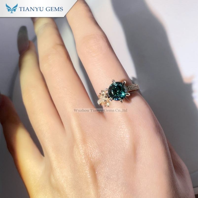 Tianyu Gems 8.0mm 2ct Round Green Moissanite 6 Prongs 10k 14k 18k Yellow Gold Jewelry Ring for Women Wedding