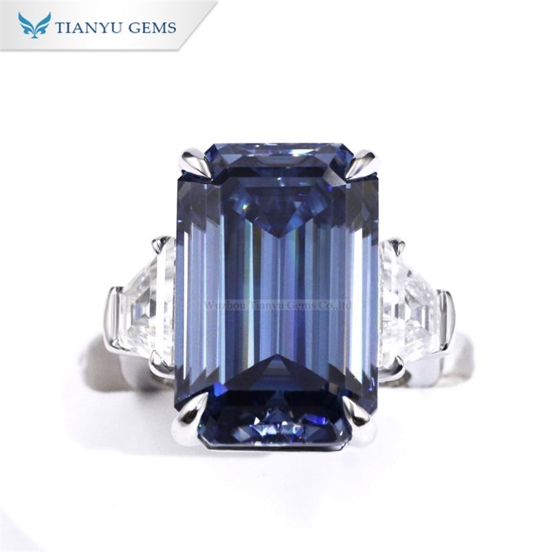 Tianyu Gems 925 Silver Fine Jewelry Ring Emerald Cut Diamond Moissanite Designed for Women