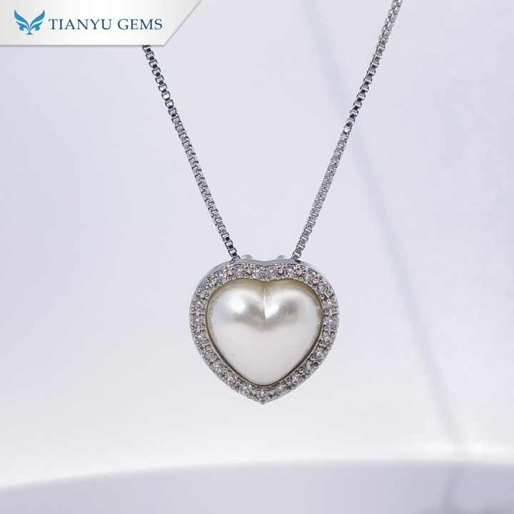 Tianyu Gems 925 silver Halo setting Pearl Heart Pendant Necklace for Women Dainty Romantic Charm Jewelry Elegant Fashion Gift