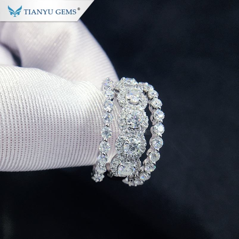 Tianyu Gems Au585/au750 Pure White Gold Wedding Ring Colorless Moissanite Engagement Woman Ring Set