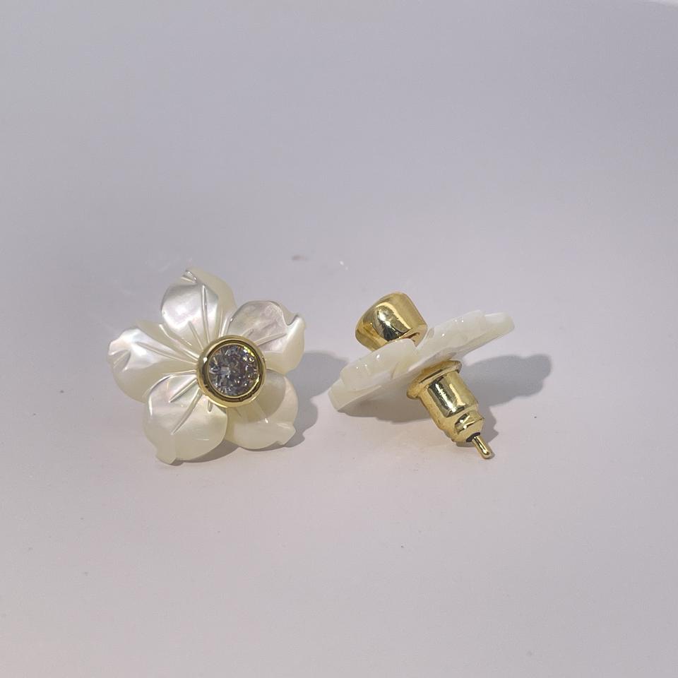 Tianyu Gems Brass Gold-Plated French Vintage Elegant Round Cubic Zircon Flower Stud Earrings for Women