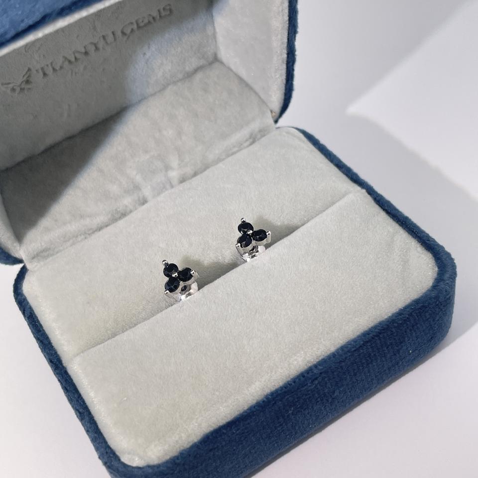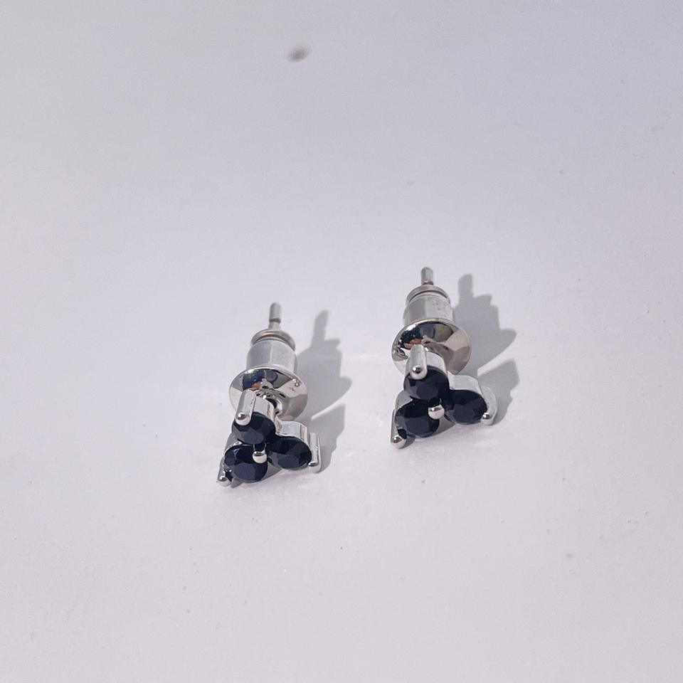 Tianyu Gems Brass Gold Plated Geometric Stud Earrings for Women Featuring Three Black Cubic Zircon Stones Classic Elegant Design