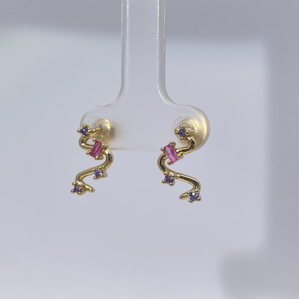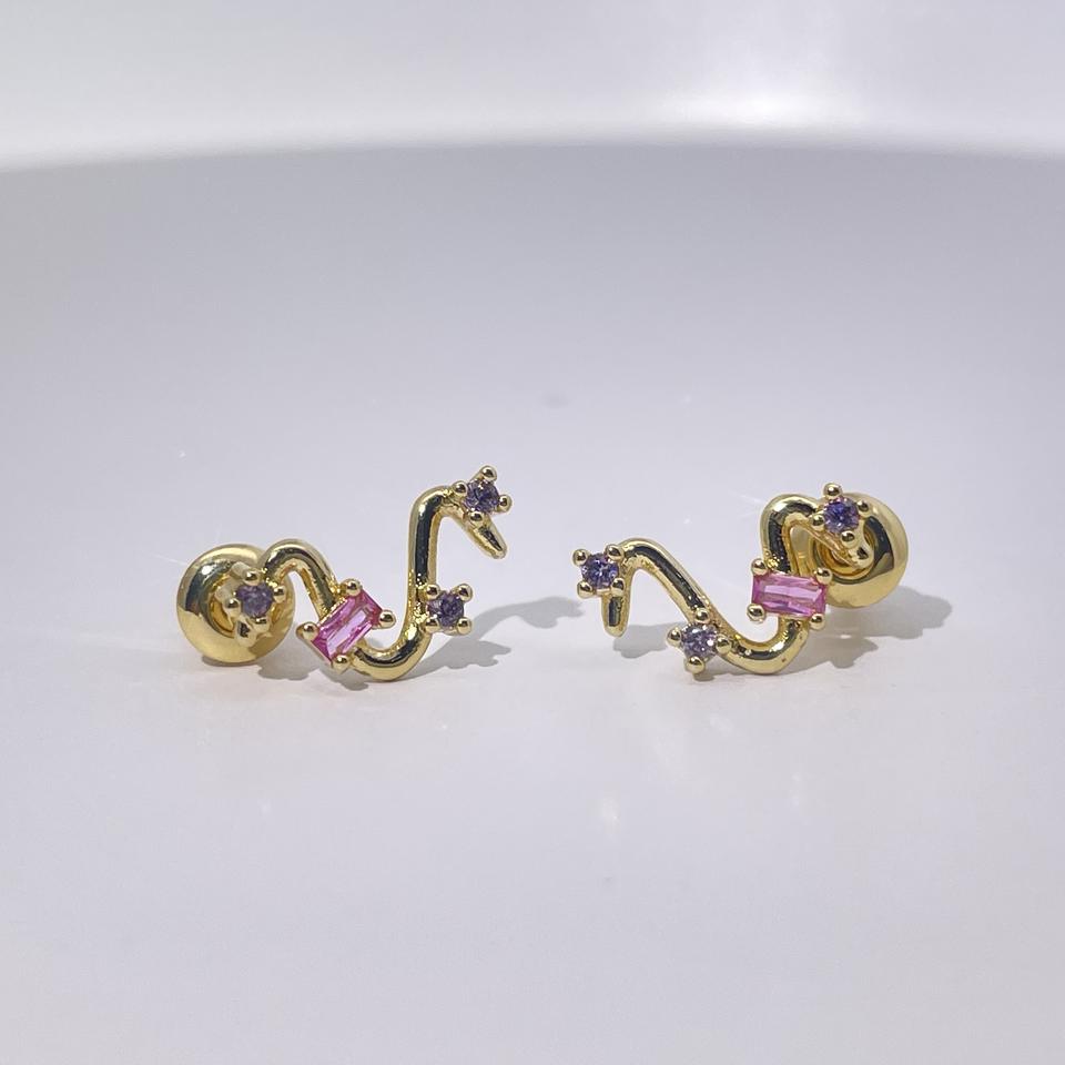 Tianyu Gems Classic Gold Plated Brass Emerald-Cut Round Zircon Stud Earrings with Animal Design Subtly Luxurious Pinkish-Purple