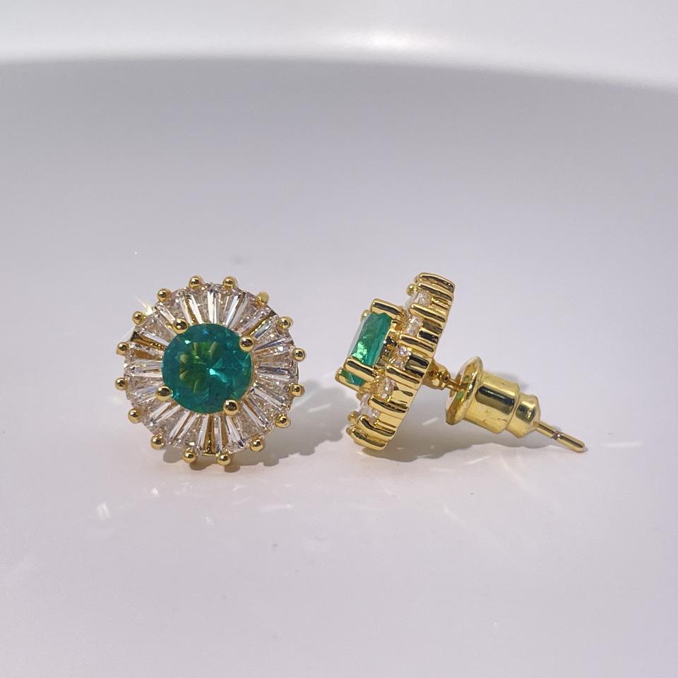 Tianyu Gems Classic Stylish Luxury Women's Stud Earrings Made Gold-Plated Brass Featuring Green and White Emerald-Cut Zircon