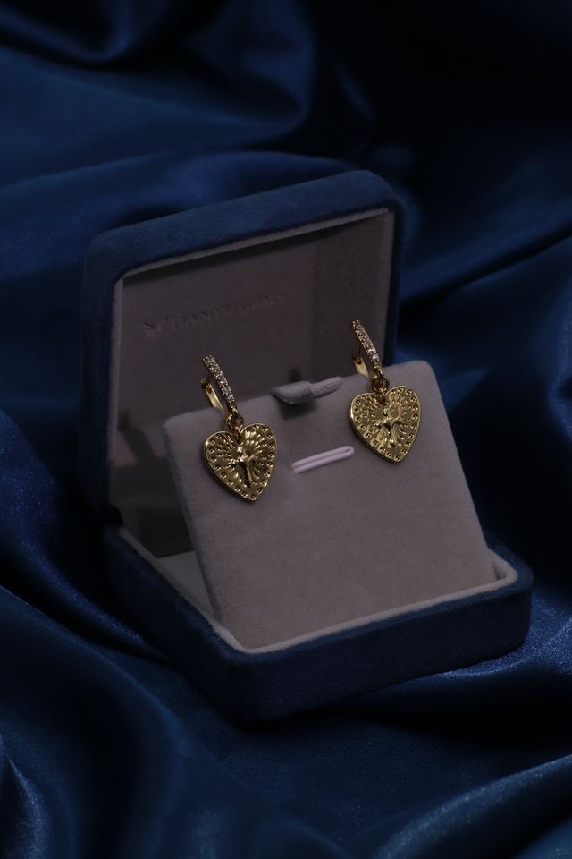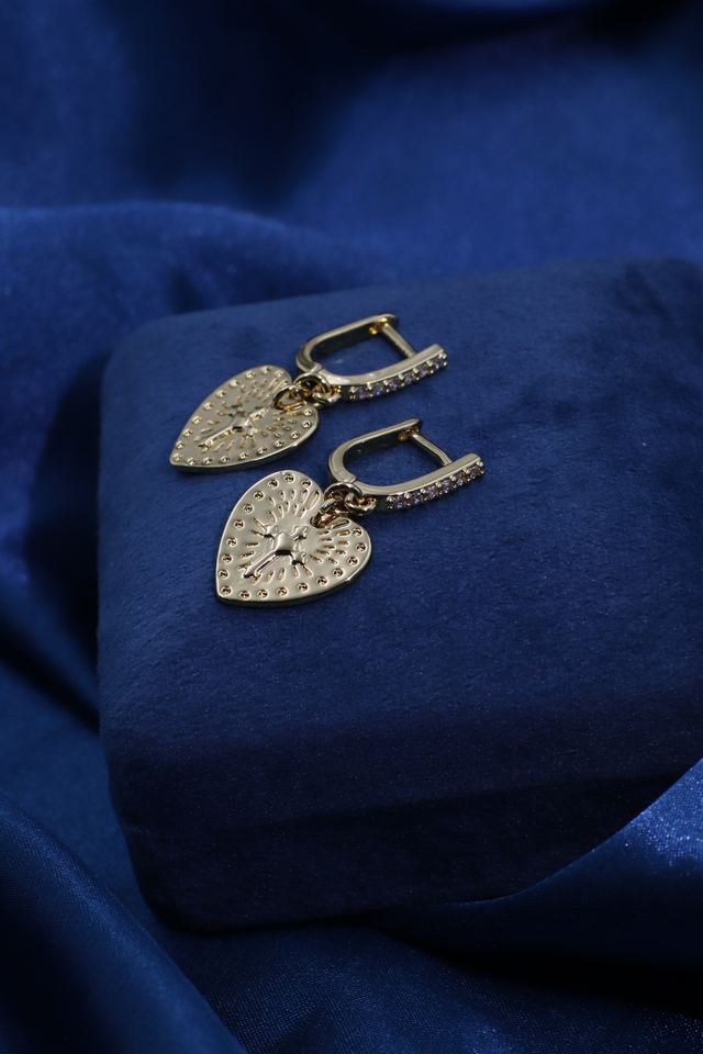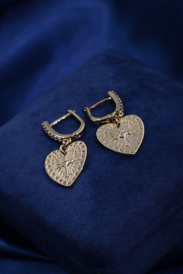 Tianyu Gems Classic Vintage Sweet Cool Style Brass Gold-Plated Textured Heart Pendant Earrings for Women