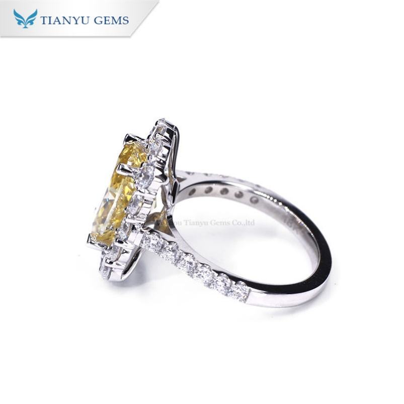 Tianyu Gems Custom Made Oval Crushed Ice Cut Vivid Yellow Moissanite White Gold Engagement Ring for Women