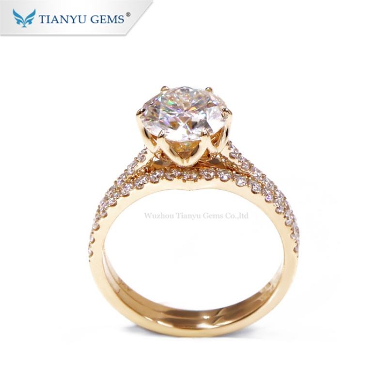 Tianyu Gems Customized 3ct Yellow Gold Moissanite Wedding and Engagement Ring