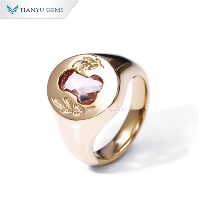Tianyu Gems Customized Design Special Cut Gemstone Pure Gold Ring for Men