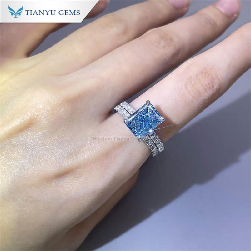 Tianyu Gems Cvd Lab Diamond Blue Diamond Radiant Cut White Gold Ring Set