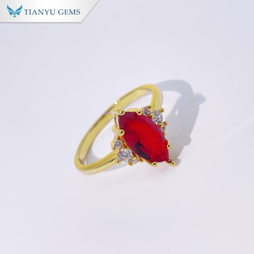Tianyu Gems Fashion Copper Blue Marquise Zircon Ring Gold Plated Elegant Design Daily Wear Accessory
