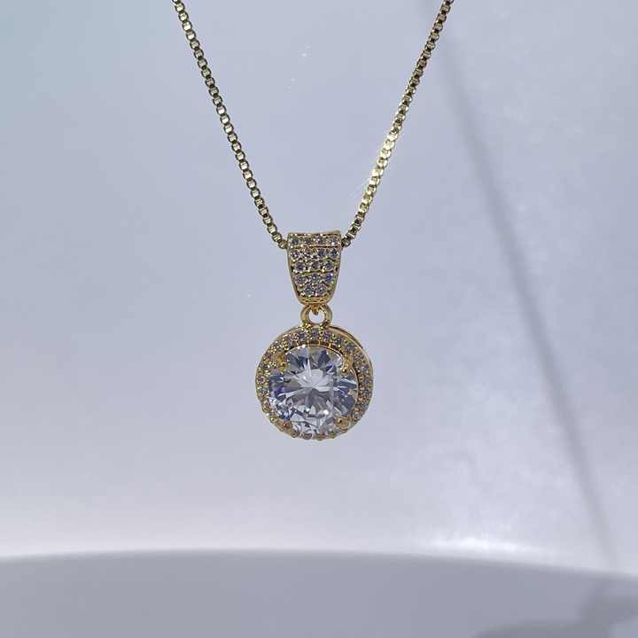 Tianyu Gems Gold Plated Round Halo Pendant Necklace for Women Pave Setting Gemstone Look Dainty Chain Fashion Jewelry