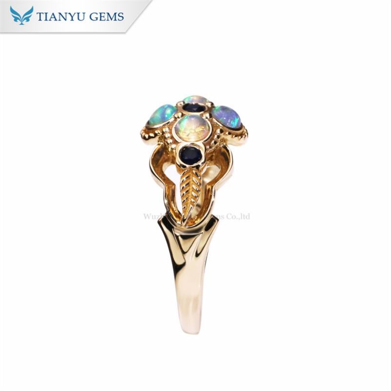 Tianyu Gems Opal Ring Round Cut Lab Gemstones Women Wedding Engagement 18K 14K 10k Real White Gold Custom Made Jewelry for Her