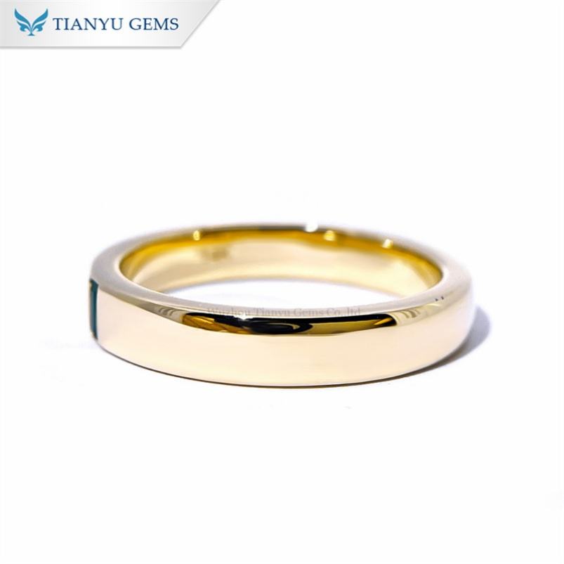 Tianyu Gems Private Custom Emerald baguette 1.5*3mm Band Width 3.5mm 14k Solid Yellow Gold Men Ring