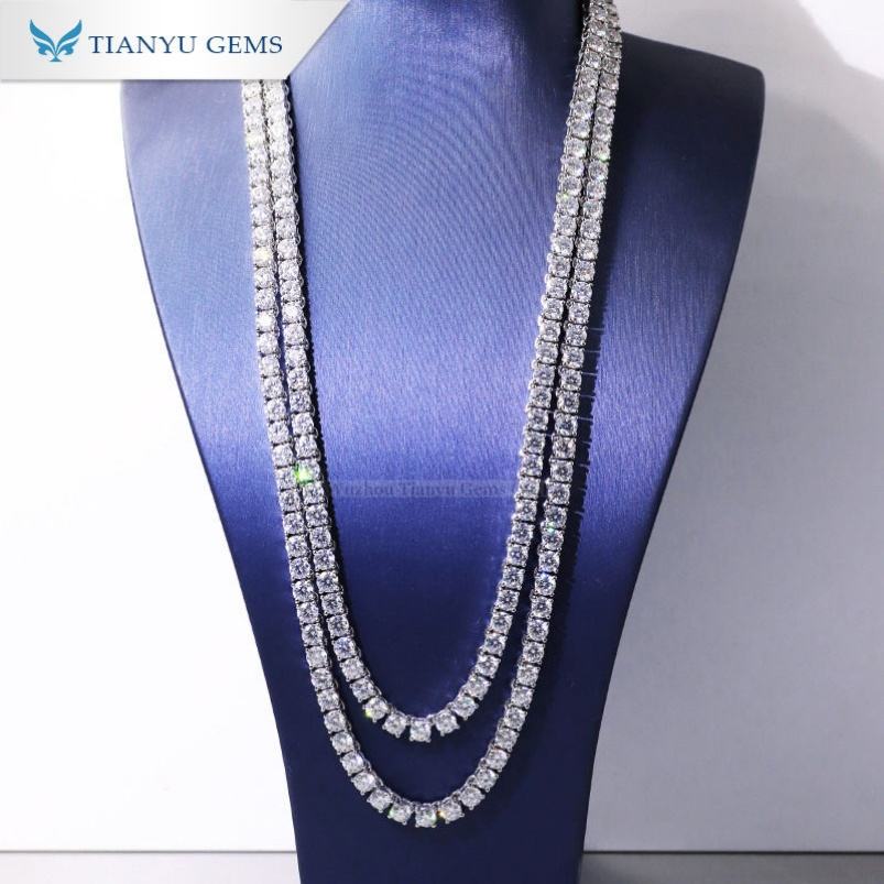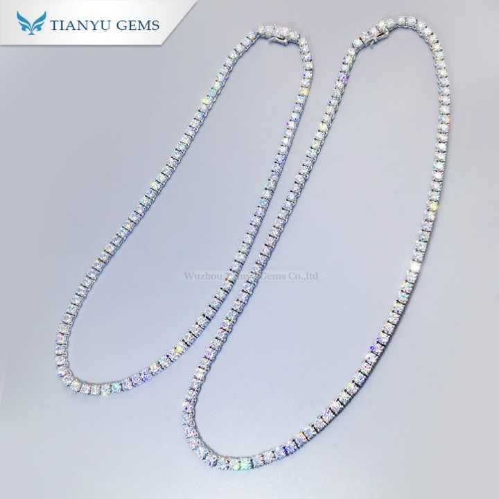 Tianyu Gems Pure White Gold Material 4.5mm Moissanite Diamonds Tennis Necklace