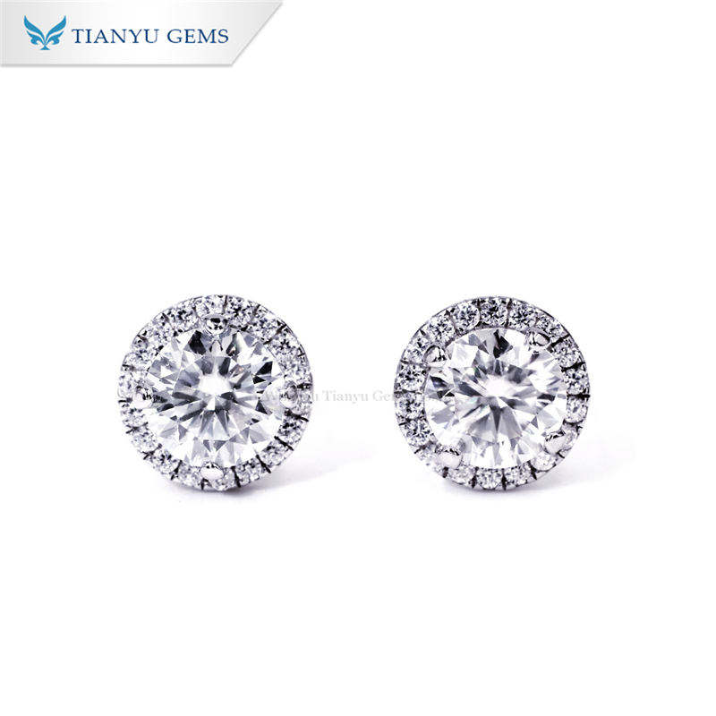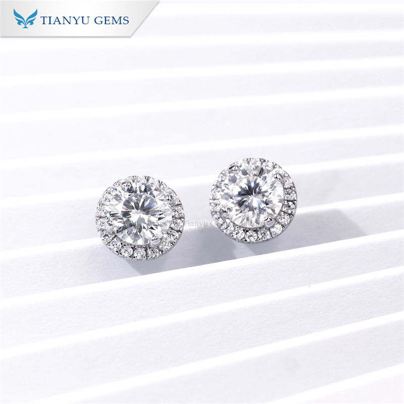 Tianyu Gems Sterling Silver Gold Plated Classic Stylish Minimalist Halo Four-prong Setting Round Moissanite Stud Earrings Unisex